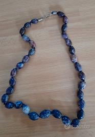 Blu/viola effetto pietra naturale di sodalite con perle ovali lunghezza 56 cm