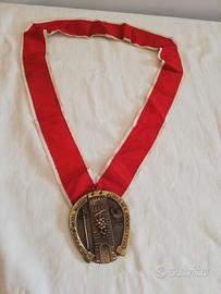 Vendo collare dei " Cavalieri delle Terre di Asti e del Monferrato" Il fregio è in ottone ed il collare in tessuto colore rosso è bianco. Dimensioni e condizioni come da foto. Spese a carico del destinatario