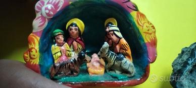 A chi colleziona mini-presepi artigianali, a soli 16,00 euro in totale (in pratica 4,00 euro cadauno), unicamente per puro realizzo, vendo 4 rappresentazioni della Natività eseguiti artigianalmente. Due di essi sono stati ricavati all'interno di 2 pietre di alabastro (h. cm. 6,00 cad.), un altro (in ceramica grezza) di fattura andina dai vivaci colori tipici locali (h. cm. 4,00) mentre l'ultimo è allocato all'interno di una roccia concava con personaggi e stella cometa in ottone (h. cm. 3,5).