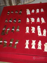 Vendesi bellissima scacchiera in madreperla e legno. Pedine in legno e avorio. Mai usata.