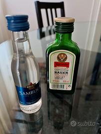 Collezione di 11 bottigliette mignon di liquori vari sigillate, da 4 cl circa, tipologia come da descrizione: - sambuca caffè Molinari n.2 - fernet-Branca n.1 - amaro Ramazzotti n.3 - sambuca Borghetti n.1 - grappa Fullsarti n.1 - brandy 3 Valletti n. 1 - amaro Montenegro n.1 - Jagermeister n.1