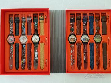 Nessun orologio è MAI stato indossato, infatti sono ancora presenti le pellicole protettive su ognuno, sul quadrante e sulla cassa. All'interno delle singole scatole a forma di libro, anch'esse in perfetto stato, sono presenti tutti i cinturini alternativi (1 in plastica, 1 vera pelle), gli accessori per lo smontaggio e cambio dei cinturini, le istruzioni, il certificato di autenticità dell'Azienda “Temphora” che li ha commercializzati a suo tempo. Presente anche il catalogo originale fronte e retro, perfettamente conservato, con le descrizioni dei singoli orologi. Unitamente alla collezione, disponibili anche 2 libricini (1993,1994) con una raccolta-collezione di vignette dell'autore, e t-shirt a tema firmata.