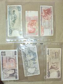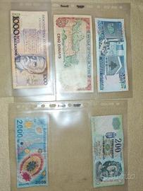 30 carta monete fuori corso vari paesi europei ed extra europei tra cui 50.000 lire Bernini prima edizione (tutta rosa) e 100000 lire Caravaggio. Includo fogli raccoglitori. Vendo solo in blocco. Prezzo non trattabile.