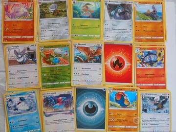 Quattrocentocinquanta carte Pokemon italiane degli anni 2020/ 2022 tutte differenti una dall'altra, in ottime condizioni di conservazione + 75 bustine in plastica trasparente in omaggio.