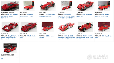Si tratta di una collezione di 37 modelli Ferrari in scala 1:18. Sono solo modelli die-cast High end apribili di marche come CMC, BBR, GMP, Exoto, Kyosho. Alcuni pezzi sono estremamente rari. Nessun modello in resina chiuso.