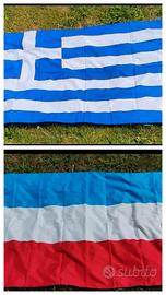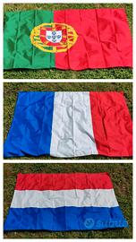 Vendo collezione di bandiere europee e dell' ONU: Olanda, Francia, Portogallo, Belgio, Spagna, Lussemburgo, Danimarca, Irlanda e Grecia misurano cm 96 X 150 circa, la bandiera dell' ONU misura cm. 204X 136 e ha qualche macchia dovuta al tempo, tutte le bandiere sono in tessuto sintetico.