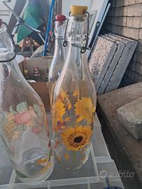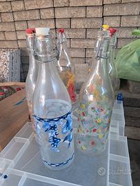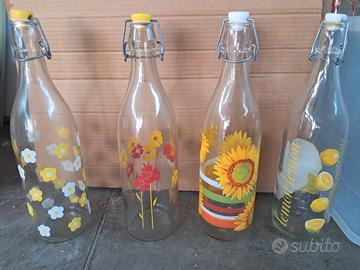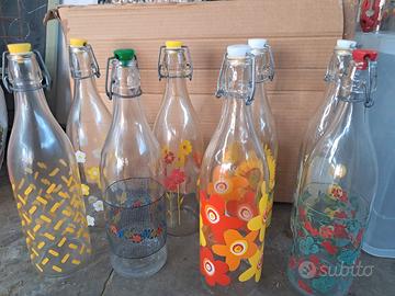 Collezione in ottimo stato di bottiglie di vetro x acqua . Con diverse stampe colorate . Costo 5 euro l' una .