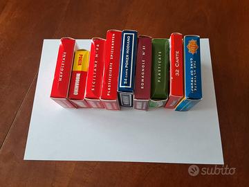 Collezione "Carte da Gioco" Fabbri/Modiano - Quasi tutta Sigillata Vendo collezione pubblicata da Fabbri Editori nel 2006 in collaborazione con Modiano, con mazzi introvabili e fascicoli storici, COME FOTO. Contenuto del lotto: ●50 fascicoli CARTE DA GIOCO Fabbri Editori numerati da 1 a 50 ●37 Mazzi di carta Modiano tutti sigillati tranne 3 (manara, Hugo pratt e illusioni ottiche = mai giocati, pari al nuovo): Due mazzi burraco Top quality con blocco segnapunti Un mazzo napoletane * Un mazzo poker 54 carte da torneo 100% plastica Due mazzi mercanti in fiera con relativo astuccio Un mazzo poker 36 carte da torneo 100% plastica Due mazzi memory di Jacovitti con relativo astuccio Tre mazzi canasta special con relativo astuccio Un mazzo piacentine triplex extra quality Un mazzo manara NON SIGILLATO MA INTONSO Un mazzo baccarà Un mazzo picchetto da 32 carte Un mazzo Hugo pratt NON SIGILLATO MA INTONSO Un mazzo doppelkopf Un mazzo poker 98 mignon rosso * Un mazzo salzburger * Un mazzo illusioni ottiche NON SIGILLATO MA INTONSO Un mazzo doppio gioco Due mazzi 4 color poker con relativo astuccio Un mazzo siciliane * Un mazzo poker 54 carte * Un mazzo uomo nero Un mazzo bresciane * Un mazzo arte da gioco Un mazzo wizard * Un mazzo skat * Un mazzo belot Un mazzo poker 98 mignon blu Un mazzo romagnole * Un mazzo airplane spotter Un mazzo parole erette Un mazzo ibuki ●150 fiches (6 pile) professionali Modiano SIGILLATE (verdi, blu e nere) Condizioni dettagliate (Massima Trasparenza): La collezione è stata controllata pezzo per pezzo per garantirne l'integrità: • Stato Sigilli:Quasi tutti i mazzi sono ancora sigillati nel cellophane originale. Solo 3 mazzi risultano aperti ma le carte non sono mai state usate e sono intonse. • Stato Astucci:Segnalo che 9 custodie dei mazzi presentano leggeri schiacciamenti o pieghe dovuti alla conservazione. (*) VEDI FOTO