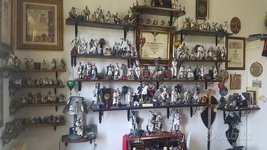 Collezione ultraventennale di pregiatissime statue/modelli, ritraenti i Cavalieri dell'antico Ordine del Tempio di Gerusalemme. La collezione, comprende pezzi originali quali spade, elmo, 4 ostensori provenienti dalla città Santa di Gerusalemme, porta candele in vetro grezzo ed argento antico, oltre a circa 47 modellini realizzati in piombo sia saraceni che templari e ritraenti scena di guerriglia. I modelli sono svariate misure e provenienti da varie località d'Europa dove in epoche remote, furono luoghi frequentati dai Cavalieri Templari. Vederla attraverso le foto non rende giustizia alla meravigliosa bellezza che emana dal vivo. La collezione in questione è frutto di una minuziosa raccolta che si è protratta nel tempo ad oggi a partire dal 1998. i modelli, ritraggono i Cavalieri nelle loro bianche vesti con la Croce Patente e la loro armatura, alcuni a cavallo altri a piedi, nelle varie posizioni di attacco e difesa. Il fascino che ne emana dalla vista della collezione completa, porta, sia l'appassionato, quanto il profano, ad ammirarne l'insieme, specialmente se illuminati con una serie di porta candele che metto in regalo ed alcuni provenienti da Murano. Ad oggi, la valutazione della medesima è stata stimata ad un prezzo di 23 mila euro " trattabili. " Per informazioni rivolgersi a me medesimo, cav. Giuseppe PISANO, tel. cell. 3343948713.