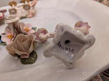 Oggetti in ceramica di Bassano, il marchio identifica una produzione ceramica originaria dell'area di Bassano del Grappa, in Italia. La zona è rinomata per la sua antica tradizione nella produzione di ceramiche e maioliche artistiche. Si tratta di 6 pezzi da collezione, la finezza con cui sono stato lavorati giustifica il prezzo che comunque è al di sotto della loro valutazione.