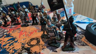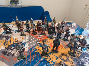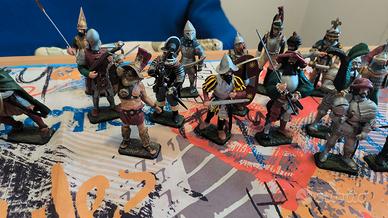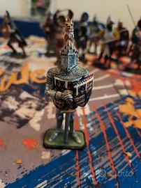 Ogni pezzo è dipinto a mano, integro e in ottimo stato, con dettagli realistici di armature, scudi e armi.