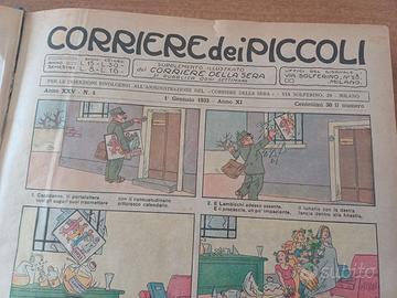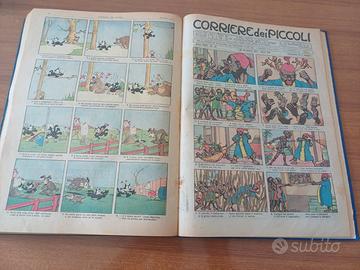 CORRIERE DEI PICCOLI - Annata Completa 1933 (53 Numeri) - Rilegatura d'Epoca prestigiosa raccolta completa del Corriere dei Piccoli, anno 1933 (dal n. 1 al n. 53).Il volume si presenta in eccellenti condizioni di conservazione, ideale per collezionisti esigenti o per un regalo di alto valore storico.Caratteristiche del lotto:Completezza: Tutti i 53 numeri dell’anno 1933 presenti, senza alcuna mancanza.Stato delle pagine: Fogli integri, assenza di strappi, scritte o mancanze di figurine/inserti. Carta con naturale e uniforme ingiallimento del tempo che ne attesta l'originalità.Rilegatura: rilegatura (dell'epoca).Condizione Rara: I fascicoli NON sono stati rifilati durante la rilegatura, mantenendo intatti i margini originali e la dimensione nativa delle tavole .Contenuti: Presenti le celebri tavole del Signor Bonaventura di Sergio Tofano (Sto), Sor Pampurio, Bibì e Bibò , Felix (Mio Mao) e tutto l'immaginario grafico dell'epoca.Prezzo 420€ .Spedizione :data la delicatezza dell'articolo si effettua solo la consegna brevimano , zona Genova nota: se interessati disponibili anche volumi con collezione completa 1932 e 1934