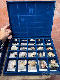 •7 raccoglitori originali rivestiti in velluto, contenenti le conchiglie