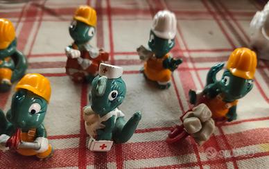 Collezione completa Happy Dinos 1996. Ci sono tutti gli accessori. 01 Mino Spuntino 02 Tato Forzuto 03 Tranquillino 04 Cico Sghembo 05 CarlettoArchitetto 06 Betto Goffetto 07 Millo Cartello 08 Lucio Brucio 09 Lucia Farmacia 10 Carlin Cariola