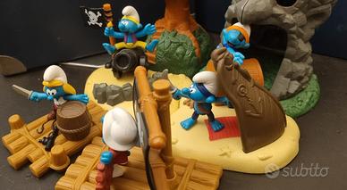 Collezione completa Puffi Pirati Mc Donalds 2004 composta da 6 figures e annesso ambiente in perfette condizioni