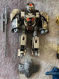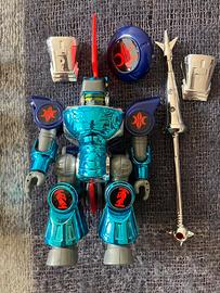 Collezione completa dei Robot Feudals originali anni ’80, prodotti da Giochi Preziosi. Include tutti i sei modelli trasformabili che combinano elementi medievali e robotici, ciascuno dotato di armi e dettagli cromati tipici della linea. Tutti i pezzi sono in buone condizioni generali, con colori ancora vivi e articolazioni funzionanti; presenti lievi segni del tempo. Manca 1 accessorio (seconda parabola). Set per collezionisti di giocattoli vintage.