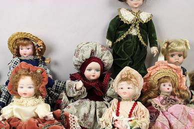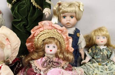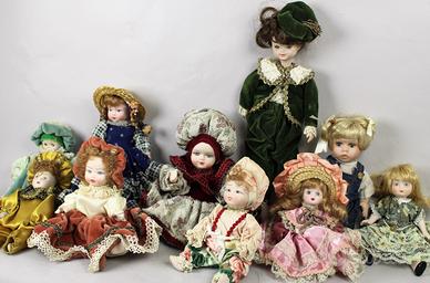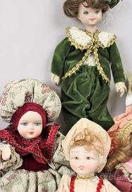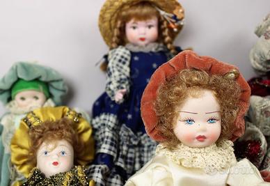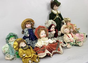 Collezione di 10 bambole originali " Vintage " in porcellana e con costumi vari.