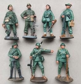 Soldatini di piombo dipinti a mano (perfetti in ogni dettaglio), raffiguranti: Corpi d'élite delle Forze Armate Italiane di terra, di mare e di aria, protagonisti nei più duri teatri di guerra dal 1935 al 1945.