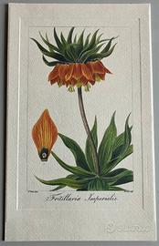 Collezione in cartellina ,di 6 stampe cromolito soggetto : Fiori Le incantevoli riproduzioni a grandezza naturale di stampe botaniche di vari fiori sono tratte da Herbier General de l ‘Amateur , ( Parigi, 1816-1824 ): l ‘erbario originale , composto da otto volumi, é conservato ora nella Bibliotheca Antiqua di Aboca Museum a Sansepolcro. Le stampe originali sono state disegnate e acquerellate “d’apres nature “ dal celebre pittore botanico Pancrace Bessa attivo presso i giardini e la corte di Versaille. Questa cartella , stampata appositamente per Aboca nel 2015, contiene 6 di queste riproduzioni che mostrano i seguenti soggetti floreali: Ranunculus Asiaticus (Ranuncolo asiatico). Fritillaria Imperialis (Fritillaria imperiale). Camellia Japonica (Camelia giapponese). Malva sylvestris (Malva selvatica). Phalangium Liliastrum (Giglio di San Bruno). Passiflora padata (una specie di Passiflora, forse Passiflora alata o simile, a seconda dell'ortografia esatta). Stampate su spesso cartoncino ruvido, in medio formato misurano cm 16 x 26 In cartellina originale, mai esposte nè incorniciate