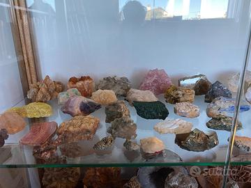 Ampia collezione di minerali e pietre o conservate in bacheca oppure su singoli basamenti in legno.