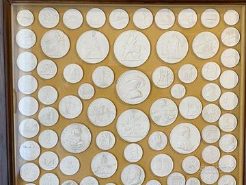 Oltre 100 calchi in gesso di monete napoleoniche, entro bella cornice In ottime condizioni come da foto che integrano la descrizione