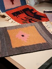 collezione di quattro tappetini kilim India vintage fatti a mano lana e cotone misura 40 * 31 con frangia laterale mai usati anno 1970 vendo tutti e quattro insieme no separatamente