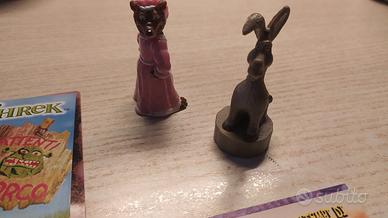 Vendo due libriccini degli spassatempi di Shrek con i loro tatuaggi (mai usati), due mini card animate con immagini del film, e due personaggi delle merendine Mulino Bianco: Il lupo (2002) e Ciuchino (2004).