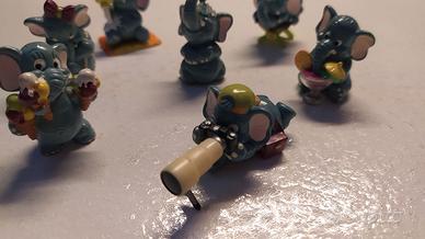 Lotto 7 personaggi degli "Elefantao" delle sorprese Kinder anno 1997. I personaggi sarebbero: Click Paparasao, Pedro Tropical, Mucho Fifao, Linda Frescau, Pia Ciapasol, Todo Slurpao, Dorinda Olè. In perfette condizioni, mancherebbe solo il topino dell'elefantino Mucho Fifao.