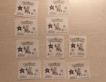 10 figurine dei Pokémon della terza stagione (con un doppione) I numeri sono: 11, 16, 17, 18, 26, 30, 56, 57 (doppione), 73 Ho disponibile solo figurine dei Pokémon, niente carte.