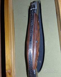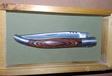 Da collezione. Rifiniture a mano. Modello: noce. Azienda secolare in Francia che prende il nome dal paese, Forge de Laguiole è tra le prime a produrre lame da collezione. Scatola originale con marchio a fuoco. Rifiniture e lama battuti e sbalzati a mano. Vendo insieme a cavatappi e tappo cromato Brandani. (Anch'esso in confezione originale e da collezione privata) Mai usati.