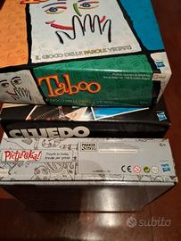 6 Giochi da Tavolo MB/Parker/Hasbro– EDIZIONE ESCLUSIVA 2009 Vendo collezione di 6 giochi da tavolo in versione Pocket/Travel della serie "Edizione Esclusiva - Prodotto Promozionale" dell'anno 2009 caratterizzati dai loghi storici MB/Parker/Hasbro. Tutti i giochi sono stati controllati e sono COMPLETI, eccetto INDOVINA CHI? a cui mancano solo i due segnapunti. Le scatole sono in ottime condizioni estetiche, non schiacciate e con colori vivi. • CLUEDO:€20 (Il pezzo più ricercato) • TABOO:€15 • TRIVIAL PURSUIT:€15 • INDOVINA CHI?:€12 ( mancano solo i due cursori segnapunti ... facilmente sostituibili o segnabili su carta) • TWISTER:€12 • PICTUREKA!:€12 (Edizione esclusiva.... con dicitura sul lato della scatola invece che sul retro) Tutto come foto