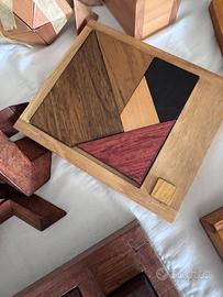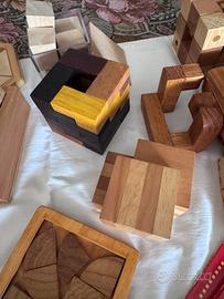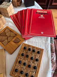 Intera collezione di giochi in legno, da costruire o completare. Solo alcuni sono stati risolti ma si possono smontare e ri-assemblare. Sono compresi anche 20 fascicoli, dedicati ognuno ad un gioco con interessanti informazioni storico/matematiche e con la soluzione dei giochi. In ultima pagina dei sudoku da risolvere. Sono adatti sia a bambini/ragazzi che a collezionisti.