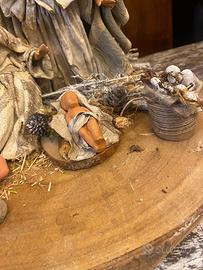 Natività in cartapesta leccese lavorata a mano secondo la tradizione salentina.Secondo le antiche tecniche della cartapesta con un tocco di tessuti broccati ricercati