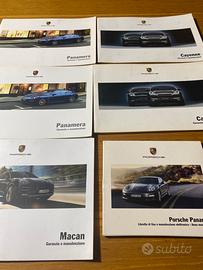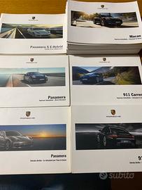 LIBRETTI DI USO E MANUTENZIONE COMPLETI ORIGINALI PORSCHE NUOVI INVENDUTI IN ITALIANO DA CONCESSIONARIA UFFICIALE: 911 CARRERA DATA DI STAMPA FEBBRAIO 2012 con 245 pagine euro 50.PANAMERA DATA DI STAMPA AGOSTO 2014. PANAMERA data di stampa FEBBRAIO 2015 con 351 pagine euro 50.BOXSTER/BOXSTER S DATA DI STAMPA LUGLIO 2011 con 230 pagine euro 50. BOXSTER-BOXSTER S-BOXSTER GTS DATA DI STAMPA FEBBRAIO 2014 con 265 pagine euro 50.SERIE DI LIBRETTI ABBREVIATI INGRESSO IMMEDIATO BREVI ISTRUZIONI CONTENENTI LE MIDALITA DI UTILIZZO DEI SISTEMI ELETTRONICI DI BORDO A 25 euro cadauno:PANAMERA S E-HYBRID AGOSTO 2014 con 40 pagine PANAMERA 2010 ENTRATA DIRETTA ISTRUZIONI IN BREVE PIEGHEVOLE da 12 pagine euro 20. PANAMERA 2015 euro 20. 911 CARRERA ANNO 2013 e anche 2014 pieghevole 12 pagine euro 20. 911 luglio 2016 istruzioni in breve con 35 pagine euro 25. MACAN MARZO 2016 con 36 pagine euro 25. Porsche 718 luglio 2016 con 36 pagine euro 25. 718 boxster-718 cayman 2017 con 36 pagine euro 25.LIBRETTI GARANZIA E MANUTENZIONE(TAGLIANDI) nuovi intonsi x i modelli PANAMERA 2015. MACAN 2017. CAYENNE 2003/04 euro 30. LIBRETTO USO E MANUTENZIONE ELETTRONICO SU DVD ORIGINALE PANAMERA 2010 euro 25.numero 12 libretti di istruzioni x installazione dock di carica in italiano e altre 11 lingue straniere insieme a 25 euro.