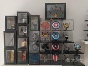 Vendo splendida e rara collezione Marvel Movie Museum (edita da DeAgostini / Eaglemoss). La raccolta comprende 44 pezzi iconici del Marvel Cinematic Universe, riprodotti fedelmente in scala con materiali di alta qualità e finiture metallizzate. La collezione è stata conservata con massima cura. Molti pezzi sono esposti nelle loro teche originali in plexiglass, mentre altri sono ancora nelle loro scatole protettive. La collezione include (tra i tanti): Caschi: Iron Man (varie Mark tra cui I, VII, XLII), Spider-Man, Black Panther, Ant-Man, Star-Lord, Loki, Ultron, Moon Knight, Daredevil (Yellow suit). Armi e Artefatti: Il Mjolnir e la Stormbreaker di Thor, lo Scudo di Captain America (varie versioni: Classico, Stealth, Captain Carter, Primo Scudo), il Guanto dell'Infinito di Thanos e il Nano Gauntlet di Iron Man. Oggetti Speciali: L'Occhio di Agamotto (Doctor Strange), il Tesseract, l'Orb di Star-Lord, i Reattori Arc di Iron Man e il set completo delle Gemme dell'Infinito incorniciate. Fascicoli: Inclusi tutti i fascicoli originali che approfondiscono la storia di ogni oggetto (fino al numero 44). Stato degli oggetti: Pezzi pari al nuovo. Teche trasparenti incluse per quasi tutti i modelli. Alcuni pezzi ancora nel box originale di spedizione. Note per la vendita: Data la delicatezza e il volume della collezione, preferisco lo scambio a mano a Raffadali o Agrigento, ma sono disponibile a valutare la spedizione. Prezzo: 680 euro Contattatemi solo se seriamente interessati. Non vendo pezzi singoli (o valuto solo lotti consistenti).