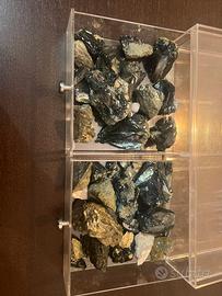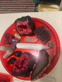 Titolo: Collezione minerali e cristalli (geodi, quarzo, ametista, rosa del deserto) Descrizione: Vendo collezione privata di minerali e cristalli, ideale per appassionati, collezionisti o come oggetti decorativi. La collezione comprende diversi pezzi di varie dimensioni, tra cui: - Geodi di quarzo (alcuni di colore rosso, molto scenografici) - Cristalli di quarzo e ametista - Selenite (bacchetta) - Rosa del deserto - Minerali grezzi scuri (tipo ematite/magnetite) - Vari piccoli cristalli e pietre decorative I pezzi sono in buone condizioni e alcuni hanno un ottimo impatto estetico, perfetti anche per arredamento o esposizione. Vendita in blocco, non separo. Per qualsiasi informazione o foto aggiuntive non esitate a contattarmi.