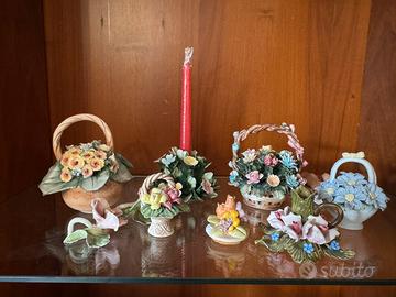 Vendo una bellissima collezione di miniature di cesti floreali di ceramica di ottima manufattura. Sono tutti in discrete condizioni come da foto.