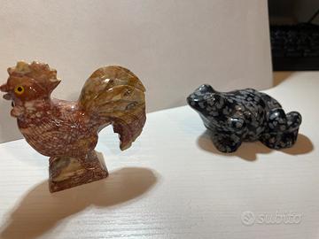 Gallo d’agata con occhio di tigre e rana in ossidiana fiocco di neve