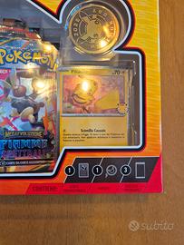 Vendo Collezione Pokémon day 30th anniversario edizione Italiana sealed, contente 3 bustine, 2 di fiamme spettrali e 1 di megaevoluzioni, moneta celebrativa 30th. E carta pickachu promo 30th.