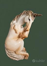 Statuina unicorno Cacciapuoti, ceramica vintage italiana, raro modello 2184.
