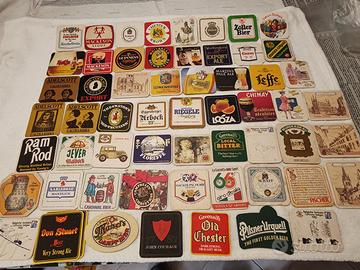 Ci sono Sottobicchieri della Carlsberg,stella artois,moretti,peroni,foster s,adelscott,guinness,old chester,leffe,lowenbrau,zoller bier,flowers
