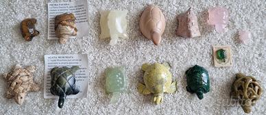 Bellissima collezione di 27 tartarughe, ognuna scolpita a mano in diverse pietre.