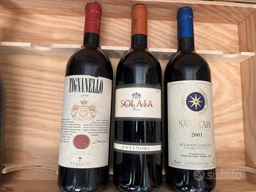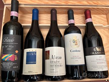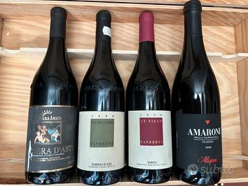 In vendita collezione vini rossi pregiati d’annata. Sempre tenuti in cantinetta a temperatura controllata. Di seguito lista con prezzo di listino, contattatemi per chiedermi quali vorreste e il prezzo a voi dedicato 2x Brunello di Montalcino CAPANNA Riserva 1997 eur150 3x Brunello di Montalcino TENUTA CAPARZO Riserva 1997 eur150 Brunello di Montalcino LA PODERINA Riserva 1995 eur100 2x Brunello di Montalcino BIONDI-SANTI 1996 eur200 2x Brunello di Montalcino TENUTE SILVIO NARDI 2005 eur90 Brunello di Montalcino MELINI 1995 eur90 LUPICAIA 2000 eur100 Brunello di Montalcino SAN GIORGIO 1997 eur80 50&50 AVIGNONESI 2000 eur160 Brunello di Montalcino FATTORIA DEI BARBI 1997 eur90 Brunello di Montalcino CASANOVA DI NERI 1990 eur140 Brunello di Montalcino CASTELGIOCONDO 1996 eur80 Barbera d’Alba MARCHESI DI BAROLO 2001 eur70 2x Barolo MARCHESI DI BAROLO 1998 eur100 Barbaresco OVELLO CANTINA DEL PINO 1999 eur70 Barbera d’Asti Superiore VITICOLTORI ASSOCIATI DI CALAMANDRANA 2000 eur80 Nebbiolo PARUSSO 2002 eur60 TIGNANELLO 1999 eur170 SOLAIA 2001 eur260 SASSICAIA 2001 eur260 Amarone della Valpolicella ALLEGRINI 2000 eur70 Amarone della Valpolicella ALLEGRINI 1999 eur70 Amarone della Valpolicella CADORO 1999 eur70 Barolo LA ROSA 1997 eur50 Nebbiolo VALMAGGIORE SANDRONE 1999 eur90 Barolo LE VIGNE SANDRONE 1999 eur210 Barolo CANNUBI BOSCHIS SANDRONE 2000 eur210 Barbera d’Asti LA TERRA AMATA 1999 eur90 2x Barolo BUSSIA SOPRANA 1992 eur130 2x Barolo ROCCHE DI LA MORRA 1989 eur140 Barolo LE COSTE 1995 eur70 Barolo ALDO CONTERNO GRANBUSSIA Riserva 1995 eur350 Barolo CORDONE 1998 eur120 Nebbiolo MUSSO 1998 eur70 Valtellina Sfursat NINO NEGRI 1999 eur70 Barolo MARCARINI LA SERRA 1997 eur130 Amarone della Valpolicella SPERI 1998 eur80 Barolo PIRA 1999 eur70