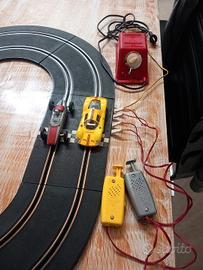 Vendo rara e ricca collezione di autopista Policar APS (scala 1:32) risalente alla fine degli anni '60 / primi anni '70. Il lotto è stato testato, l'elettronica è funzionante e i motori delle vetture girano correttamente. VETTURE INCLUSE: Ferrari 330 P3 Gialla (Cod. A70): PREGI: Carrozzeria lucida, fari anteriori trasparenti integri, decalcomanie originali presenti, meccanica originale e funzionante (corona/pignone OK). DIFETTI: Gomme posteriori slittano in accelerazione. B.R.M. Formula 1 Argento (Cod. A53): PREGI: Telaio integro senza crepe,pilota e parabrezza a bolla presenti, motore funzionante. DIFETTI: Gomme anteriori cristallizzate con crepe, un contatto elettrico da sostituire(quello tipo treccine che appoggia sul binario) TRACCIATO (22 PEZZI TOTALI): 11 Rettilinei P8 (220mm): 6 completi di scatola gialla originale, 5 sciolti. 8 Curve P9 (60°): 1 con scatola gialla originale, 7 sciolte. 2 Curve "A": Rare varianti con linea di mezzeria bianca originale. 1 Rettilineo Traguardo P12: Completo di prese per alimentazione e joystick. ACCESSORI E KIT ELEVAZIONE (MOLTO RARO): 16 Piloni totali: 6 modello P44 (perfetti), 8 con clip metallica (5 perfetti, 3 riparati ma funzionanti), 2 danneggiati/rotti utili per recupero. 40 Cingoli neri: Sostegni flessibili per rampe e sopraelevate (integri). 14 Clip bianche: Fermi di giunzione laterale tra i binari. 16 Guardrail: 8 lunghi (uno con piccola lesione) e 8 piccoli per curve. Bordi Pista: Vari pezzi color panna per allargamento carreggiata e paraboliche. ELETTRONICA E RICAMBI: Trasformatore P3 Rosso: Testato e funzionante (nota: scocca richiusa con nastro adesivo. 2 Joystick "a pollice": Uno giallo e uno grigio, originali e funzionanti. Ricambi: Inclusa matassa di treccine in rame nuove per la manutenzione delle vetture. NOTE DI VENDITA: Il materiale mostra i normali segni del tempo che ne testimoniano l'autenticità. Ideale per collezionisti o per chi desidera rimettere in pista un pezzo di storia del modellismo italiano.
