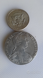 N. 2 monete 1 della regina del 1780 e l'altra di kennedy del 1964 dopo il suo omicidio ottimo stato da ripulire prezzo trattabile