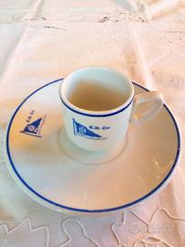 Tazzina da caffè degli anni '90 della compagnia di bandiera egiziana, Egyptian Navigation Company, porcellana, ottime condizioni
