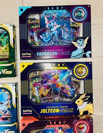 Vendo set completo di collezioni speciali e premium dedicate alle evoluzioni di Eevee: ✨ Leafeon Vastro ❄️ Glaceon Vastro 🔥 Flareon VMAX 💧 Vaporeon VMAX ⚡ Jolteon VMAX 📦 Tutti i box sono nuovi, sigillati e in condizioni perfette 🎴 Contengono carte promo esclusive + bustine originali Pokémon 💎 Ideali per collezionisti o come investimento (set molto ricercati!) ✔️ Perfetti anche come regalo ✔️ Nessun difetto, conservati con cura 💰 Possibilità di vendita singola o in blocco (sconto sul set completo)