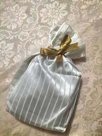 Con raffinato sacchetto regalo in raso e chiusura con fiocchetto in stoffa dotato.