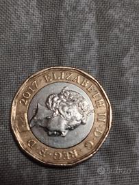 Questa moneta da 1 sterlina coniata nel 2017 mostra il ritratto della Regina Elisabetta II.
