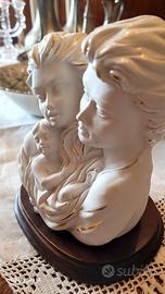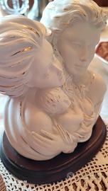 statua in ceramica "famigliari base in legno,firmata.